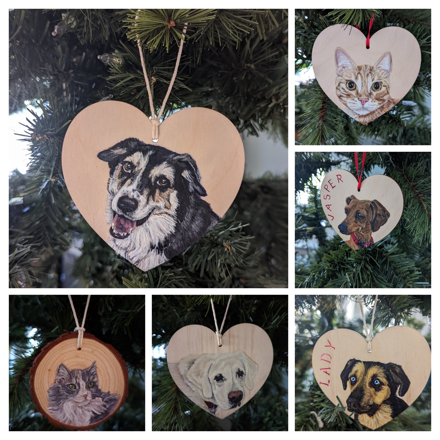 A custom pet portrait is a meaningful and handmade gift! Each one is painted using a mix of acrylic and acrylic gouache paint and can come on a variety of ornament styles and more. My current portfolio consists mostly of dogs and cats, but I have worked on several horse paintings and a few chickens! Feel free to reach out about other pet portraits to see if it is something I can help you with and how we can best customize yours!
